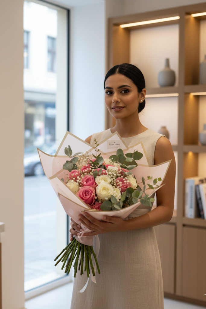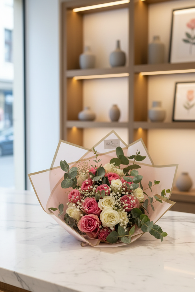Unter frischen Blumen, welche eine Länge von 50 cm aufweisen, präsentiert sich ein perfektes Geschenk für jeglichen Anlass. Die edle Seidenverpackung gewährleistet nicht nur eine ansprechende Ästhetik, sondern zeichnet sich auch durch ihre Reißfestigkeit bei Feuchtigkeit aus. Zusätzlich sind die Rosen mit frischem Schleierkraut und Eukalyptus versehen, um eine weitere elegante Note hinzuzufügen